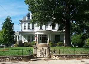 The E. L Evans House – A fine representative example of the Queen Anne style at its best. Built in 1892 by Edward L. Evans, the imposing residence features elaborately detailed porches, pressed-brick ornamentation and an exceptional interior. It is unusual for its porches, wide central passage plan, and combination of different building materials including weatherboards, wood shingles, and pressed brick.
