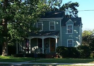 Queen Anne Victorian house with gable roof, 6-bay wraparound porch with turned posts, spindle frieze, turned balustrade. Built by the Willingham family in 1899. Purchased by the Dickerson family in 1920 and remained in the Dickerson family until the 1980’s. Mr. Dickerson started a pool hall in 1901, and was located downtown at 521 N. Main Street.